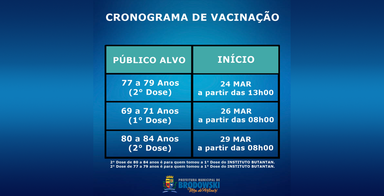 *Obs: 2° Dose de 80 a 84 anos e 77 a 79 anos é para quem tomou a 1° Dose do INSTITUTO BUTANTAN