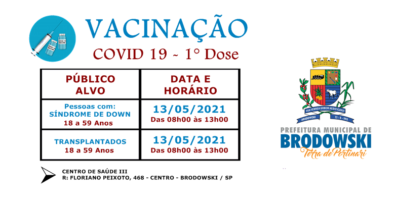A vacinação conta a COVID 19 está acontecendo EXCLUSIVAMENTE no Centro de Saúde III, situado a Rua Floriano Peixoto, 468.