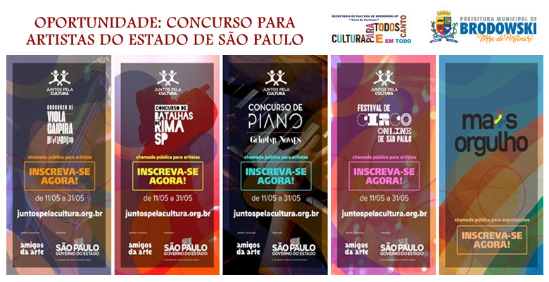 A Prefeitura Municipal de Brodowski, Município de Interesse Turístico através da Secretaria Municipal de Cultura Brodowski – Governo do Estado de São Paulo, e Secretaria de Cultura e Economia Criativa, apresenta: