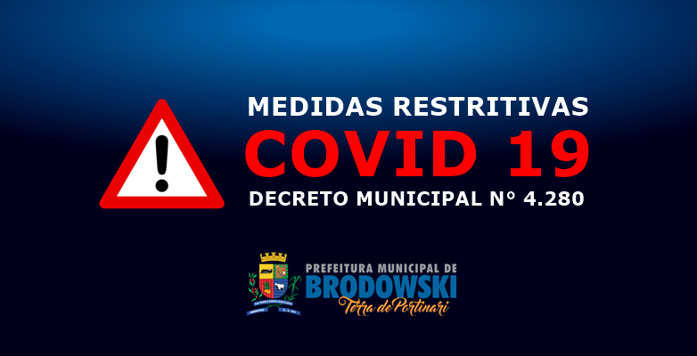 A Prefeitura do Município de Interesse Turístico de Brodowski editou na data de hoje (07/06/2021) um novo Decreto Municipal, a fim regulamentar as medidas restritivas para contenção do Covid 19 entre o período de 07 a 14 de Junho de 2021 no Município de Brodowski.