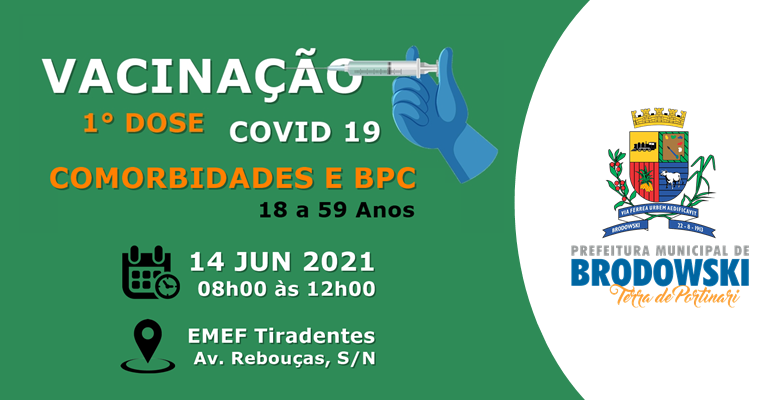 - Local: A vacinação contra a COVID 19 estará acontecendo EXCLUSIVAMENTE na EMEF Tiradentes, Av. Dr. Rebouças, S/N.