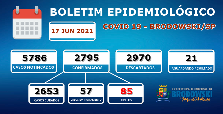 Atualização Coronavírus: Boletim Epidemiológico de Brodowski – 17/06/2021.