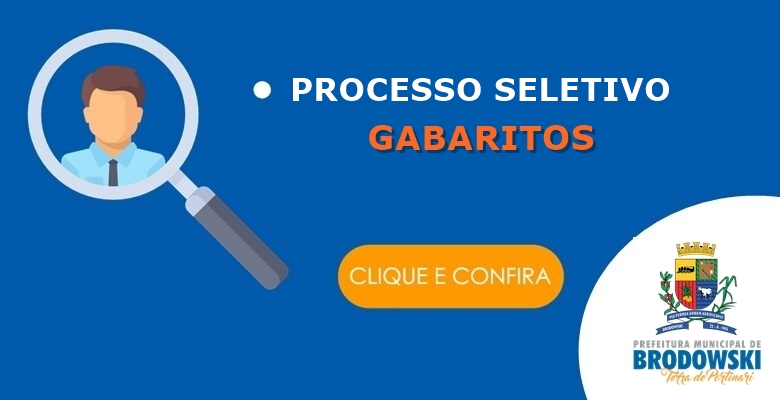 A Prefeitura do Município de Brodowski, Estado de São Paulo, por meio de sua Comissão de Processo Seletivo, juntamente com o Instituto Nacional de Desenvolvimento Educacional e Capacitação – INDEC, responsável pela realização do Processo Seletivo, conforme Edital nº. 001/2021, tornam público os Gabaritos das provas objetivas do Processo Seletivo 001/2021.