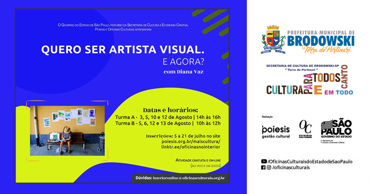 A Prefeitura do Município de Interesse Turístico de Brodowski, através da Secretaria Municipal de Cultura, em parceria com Poiesis, Oficinas Culturais e Governo do Estado de São Paulo através da Secretaria de Cultura e Economia Criativa apresentam: