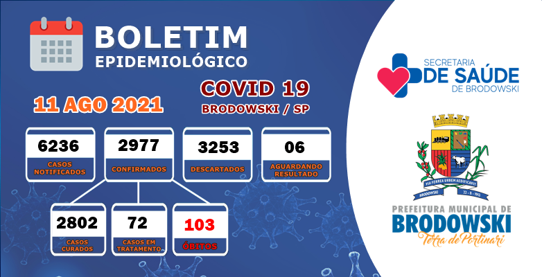 Atualização Coronavírus: Boletim Epidemiológico de Brodowski – 11/08/2021.