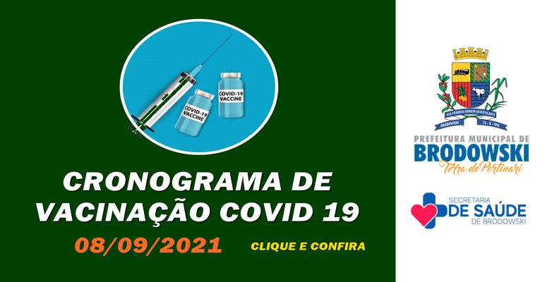 Confira as etapas, público alvo e horários da vacinação contra a COVID 19 que ocorrerá no próximo dia 08/09/2021.