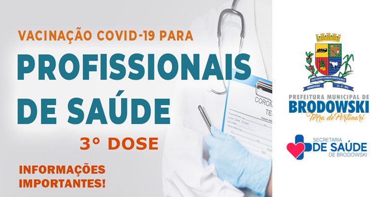A Prefeitura do Município de Interesse Turístico de Brodowski, através da Secretaria Municipal de Saúde, informa a todos os Profissionais da Saúde, que para a vacinação da categoria serão seguidos os seguintes critérios: