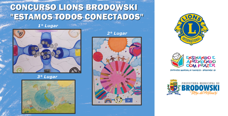 A Secretaria Municipal de Educação tem a honra de anunciar os vencedores do concurso promovido pelo Lions Club de Brodowski, com o tema: “ESTAMOS TODOS CONECTADOS”