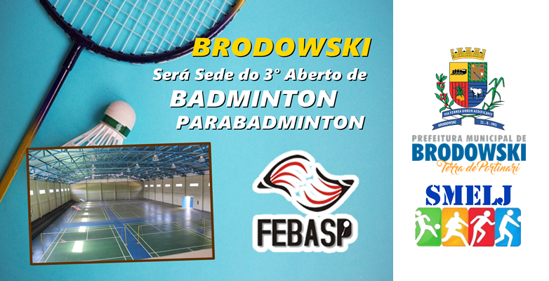 Evento organizado pela FEBASP (Federação de Badminton do Estado de São Paulo) será realizado nos dias 11 e 12 de Dezembro de 2021. É oficial! Pela primeira vez na história o novo Centro de Excelência em Badminton ”José Marcos Tofetti “ será palco de uma competição oficial do esporte. Nos dias 11 e 12 de Dezembro será realizado o 3º Aberto de Badminton Parabadminton. As categorias serão aberto, jovens e parabadminton. Confira os Jogos de Badminton dos competidores de Brodowski: