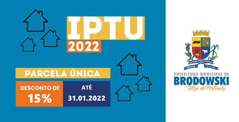 O pagamento do IPTU 2022 em parcela única até 31 de janeiro está com desconto de 15%. O pagamento pode ser realizado nas agências da CAIXA Econômica Federal e Lotéricas.