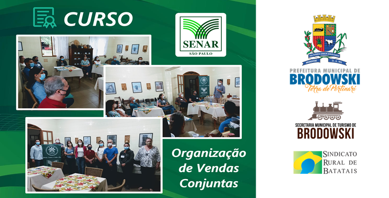 Aconteceu nos dias 31/01 (Segunda) e 01/02 (Terça) no Hotel Estância Mardem, o curso “Organização de Vendas Conjuntas”. O curso totalmente gratuito é uma realização e oferecimento do Sindicato Rural de Batatais e SENAR/SP em parceria com a Prefeitura do Município de Interesse Turístico de Brodowski, através da Secretaria Municipal de Turismo.