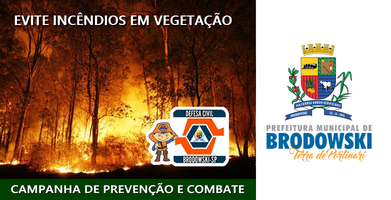 A Prefeitura do Município de Interesse Turístico de Brodowski em união com a DEFESA CIVIL do Município, anunciam durante esse mês de março de 2022, a CAMPANHA DE PREVENÇÃO E COMBATE CONTRA INCÊNDIOS na cidade.