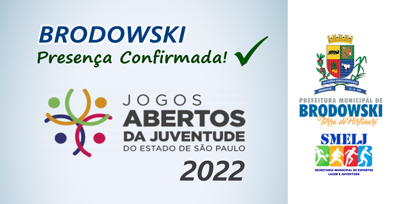 A Prefeitura do Município de Interesse Turístico de Brodowski, através da Secretaria Municipal de Esportes, Lazer e Juventude estará participando dos JOGOS DA JUVENTUDE do Estado de SP 2022.