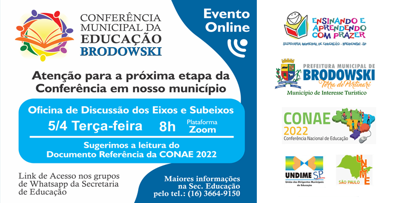 A Prefeitura do Município de Interesse Turístico de Brodowski, através da Secretaria Municipal de Educação, vem realizando a “CONFERÊNCIA MUNICIPAL DA EDUCAÇÃO”.