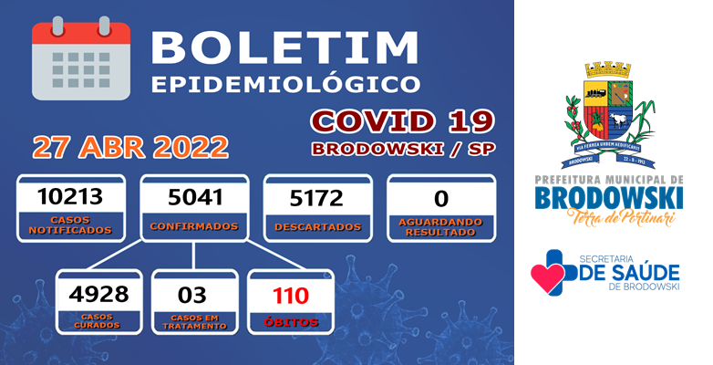 Atualização Coronavírus: Boletim Epidemiológico de Brodowski – 27/04/2022.
