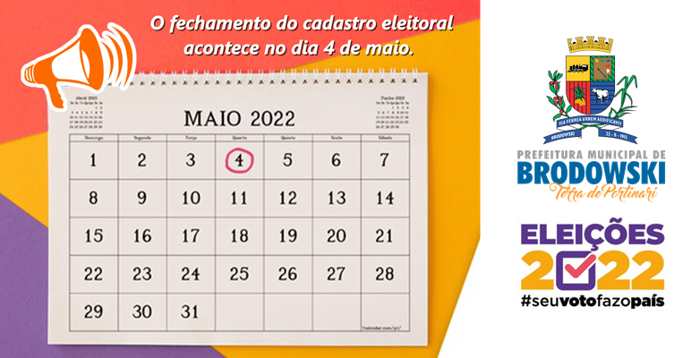 O dia 04 de Maio de 2022 é o último dia para inscrições de novos eleitores, transferência e regularização de título de eleitor. Se precisar, pode fazer sem sair de casa. Acesse o Atendimento Online: