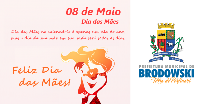 A Prefeitura do Município de Interesse Turístico de Brodowski deseja a todas as mamães brodowskianas um Feliz Dia das Mães!