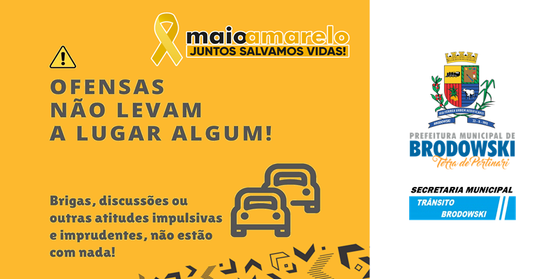 A Prefeitura do Município de Interesse Turístico de Brodowski, através da Secretaria de Trânsito e Segurança apresentam durante o mês de maio de 2022, a Campanha “Maio Amarelo – Mês de Conscientização contra acidentes no Trânsito”.