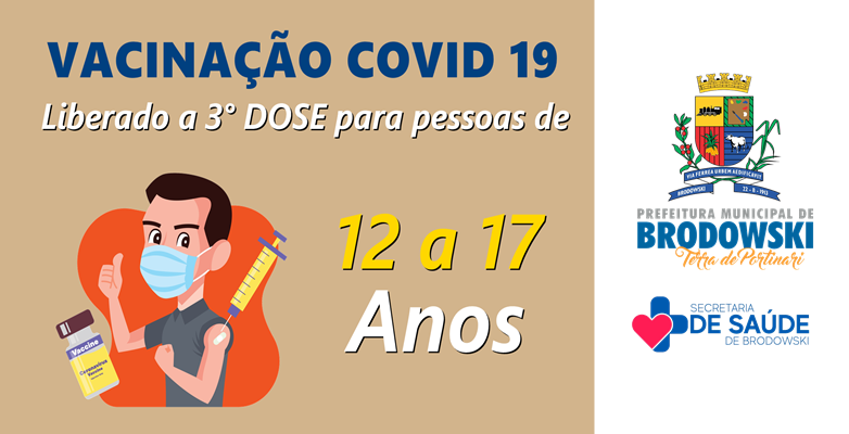 A Secretaria Municipal de Saúde comunica que já estão liberadas a aplicação de 3° Dose para pessoas de 12 a 17 anos nos postos de vacinação.