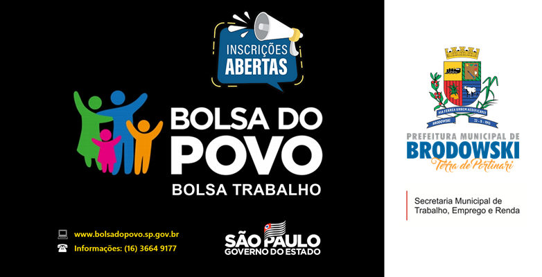 Inscrições: Serão aceitas inscrições de moradores do estado de São Paulo, desempregados, maiores de 18 anos e com renda familiar de até R$ 550 por pessoa (equivalente a meio salário mínimo). Os cidadãos elegíveis devem se inscrever no portal do Bolsa do Povo entre 30 de maio e 17 de junho. A convocação será feita por meio de publicação no Diário Oficial do Estado.