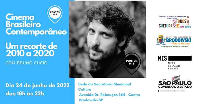 O CINEMA BRASILEIRO CONTEMPORÂNEO – Um recorte de 2010 a 2020. Projeto em parceria com Pontos MIS (Museu da Imagem e Som São Paulo) como parte das ações em que Brodowski foi contemplada em 2022, promovendo assim capacitação para todos nossos grupos de cinema que há tempos produz filmes em nossa cidade, e, para quem deseja adquirir conhecimento do universo cinematográfico.