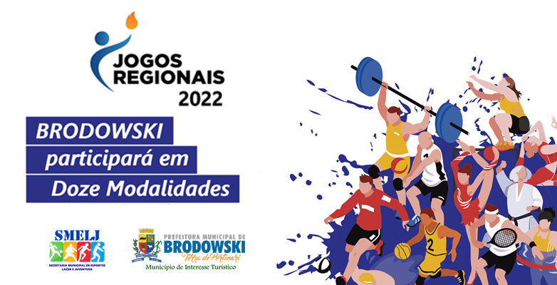 A Prefeitura do Município de Interesse Turístico de Brodowski, através da Secretaria Municipal de Esporte, Lazer e Juventude irá participar dos jogos regionais do Estado de São Paulo com 12 modalidades esportivas.