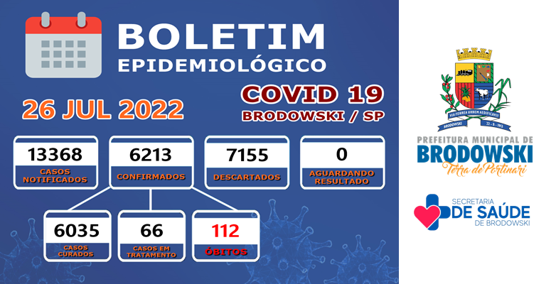 Atualização Coronavírus: Boletim Epidemiológico de Brodowski – 26/07/2022.