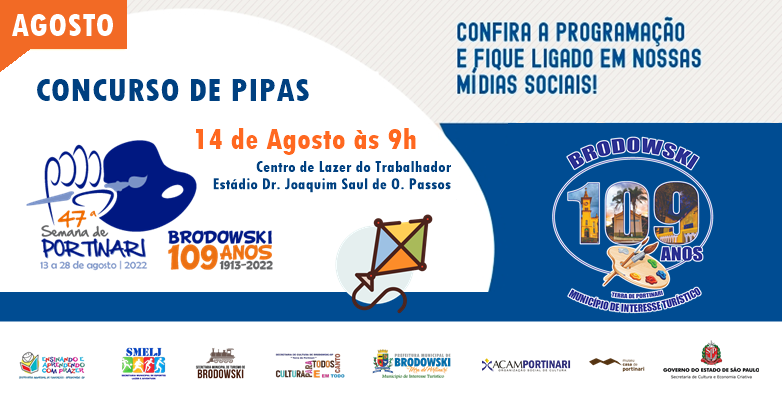 A Prefeitura do Município de Interesse Turístico de Brodowski, através da Secretaria Municipal de Esportes, Lazer e Juventude com apoio cultural da ACAM Portinari e Museu Casa de Portinari apresentam nos festejos da 47° SEMANA DE PORTINARI o Tradicional: