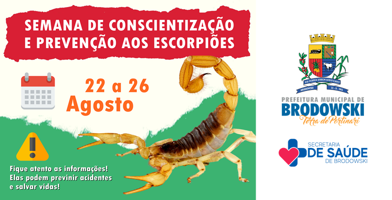 Durante toda a semana serão trabalhados nas redes sociais e site da Prefeitura de Brodowski orientações para CONSCIENTIZAÇÃO E PREVENÇÃO AOS ESCORPIÕES!