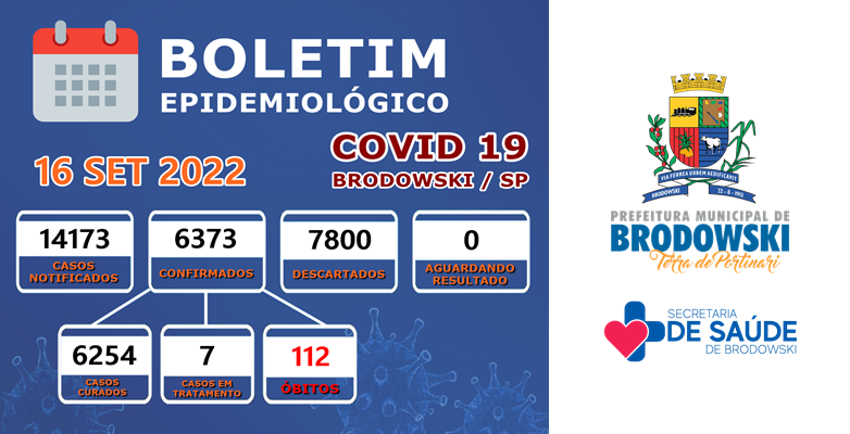 Atualização Coronavírus: Boletim Epidemiológico de Brodowski – 16/09/2022.
