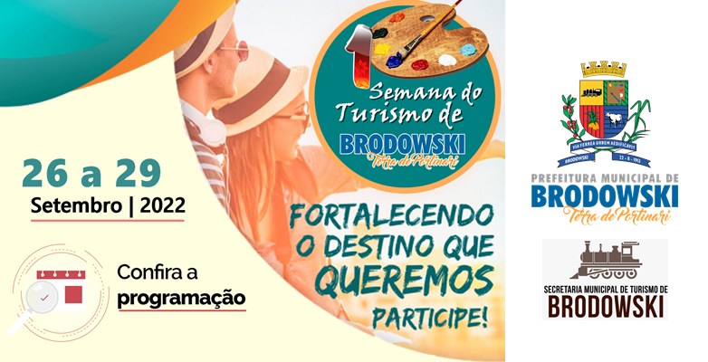 I SEMANA DO TURISMO DE BRODOWSKI – Uma semana repleta de ações com o intuito de estímulo e melhorias contínua na gestão dos serviços e negócios ligados ao turismo.