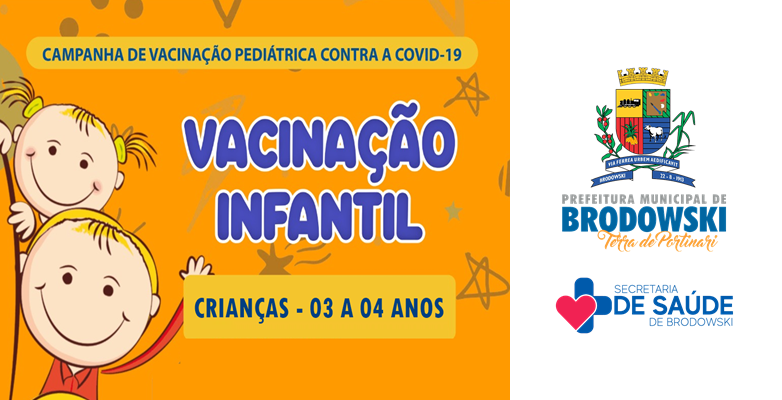 A Secretaria Municipal de Saúde, comunica que a partir de Segunda (03/10), estará disponível a vacinação contra a COVID 19 para Crianças de 03 a 04 anos