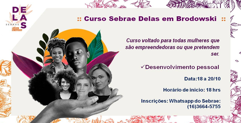 O Sebrae de Brodowski está organizando um curso voltado para todas as mulheres empreendedoras ou que desejam empreender. Esse curso é voltado para desenvolvimento pessoal, abordando temas relacionados as vivências do público feminino, inteligência emocional, entre outros.