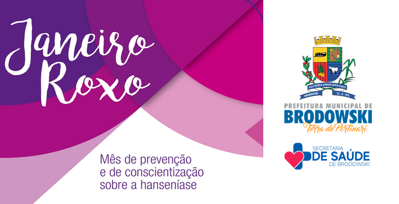O Janeiro Roxo é o mês de campanha de prevenção e tratamento à Hanseníase, doença de pele transmitida por gotículas que saem do nariz ou pela saliva. Afeta primordialmente a pele, mas pode afetar também os olhos, os nervos periféricos e, eventualmente, outros órgãos. Ao penetrar no organismo, a bactéria inicia uma luta com o sistema imunológico e fica escondida ou adormecida no organismo de dois a sete anos.