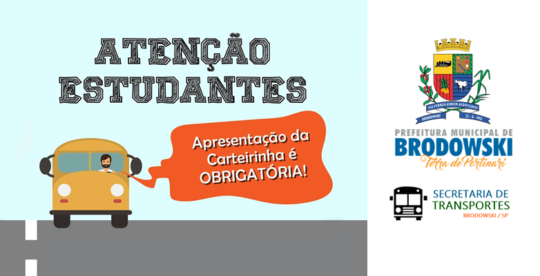 A Prefeitura do Município de Interesse Turístico de Brodowski, por meio da Secretaria de Transporte, inicia na próxima segunda-feira (16) ,o cadastro de alunos para o transporte intermunicipal universitário, técnico e ensino médio, o prazo termina no dia 31 de janeiro de 2023. Estudante fique atento para não perder o prazo!