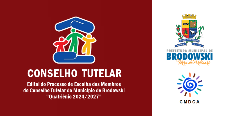 O Conselho Municipal dos Direitos da Criança e do Adolescente do Município de Brodowski – CMDCA, no uso de suas atribuições, conforme preconiza a Lei Federal nº 8.069/90 – Estatuto da Criança e do Adolescente, a Resolução nº 231/22 expedida pelo Conselho Nacional dos Direitos da Criança e do Adolescente – CONANDA, a Lei Municipal Nº.2.065 de 18 de Outubro de 2011, Lei Municipal nº 2.803 de 31 de março de 2023 e a Lei Municipal 2.131 de 20 de dezembro de 2012, conforme Artigo 34 – “… As regras para o pleno funcionamento do Conselho Tutelar, inclusive as de competência, são as definidas pela Lei Federal N° 8069 de 13 de julho de 1990, bem como na resolução CONANDA, N° 231, de 28 de dezembro de 2022 e Lei n° 12.696, de 25 de julho de 2012 ou outro ato normativo que venha a ser expedido em sua substituição ou complementação…”, TORNA PÚBLICO o Processo de Escolha Unificado para Membros do Conselho Tutelar para o quatriênio 2024/2027, mediante as condições estabelecidas neste Edital.
