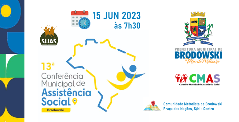 O Conselho Municipal de Assistência Social (CMAS), convida a todos os munícipes para a “13° Conferência Municipal de Assistência Social”.