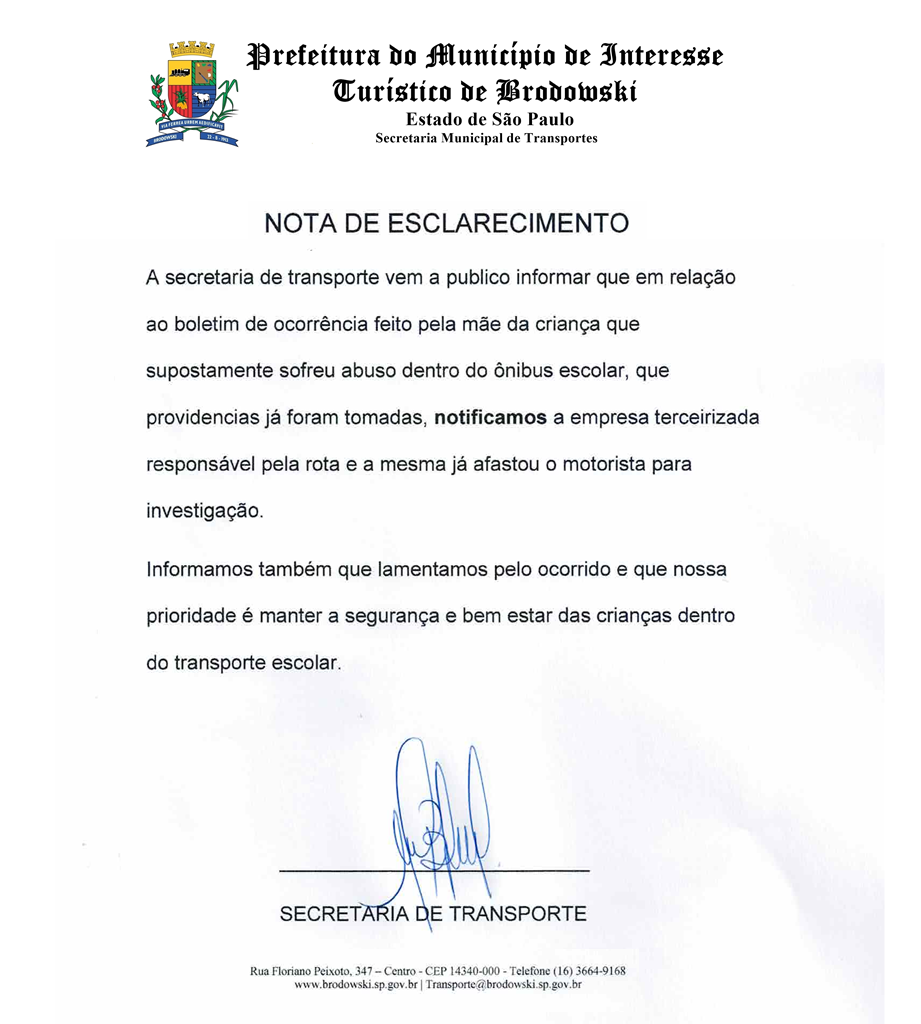 NOTA DE ESCLARECIMENTO – Secretaria de Transportes!