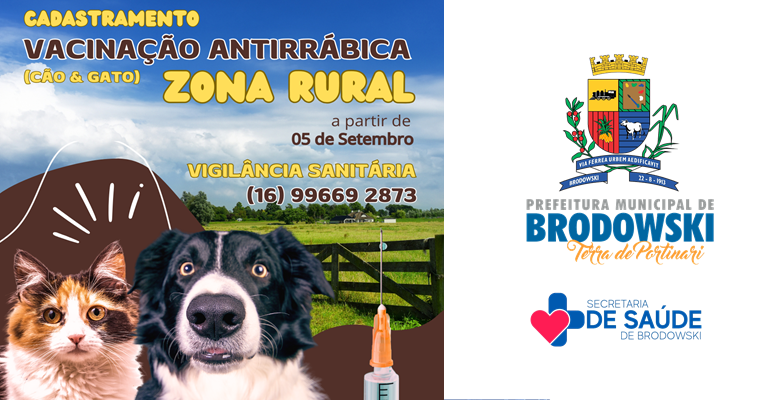 A Prefeitura Municipal de Interesse Turístico de Brodowski, por meio da Secretaria Municipal de Saúde inicia nesta Terça-Feira (05/09), o cadastramento para uma campanha especial de vacinação na zona rural de Brodowski.