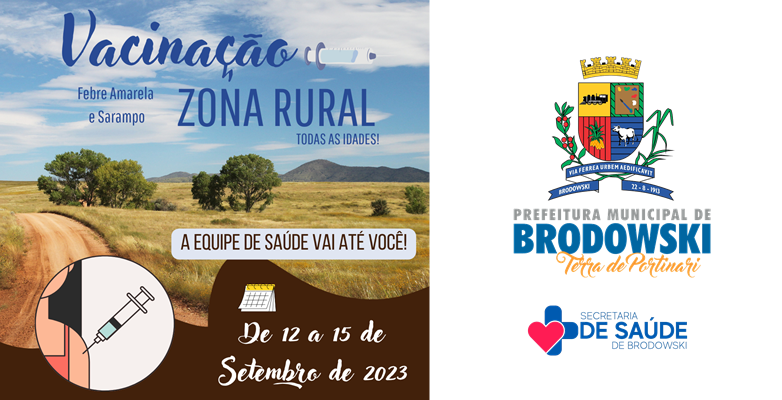 A Prefeitura Municipal de Interesse Turístico de Brodowski, por meio da Secretaria Municipal de Saúde iniciara a partir do dia 12/09 a intensificação da vacinação contra a febre amarela e sarampo a todas as idades (vacina em zona rural).