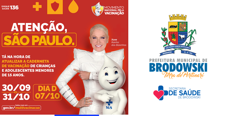 A Prefeitura Municipal de Interesse Turístico de Brodowski, através da Secretaria Municipal de Saúde dá início ao movimento nacional pela vacinação. A campanha de multivacinação ocorrerá dos dias 30/09/2023 a 31/10/2023!