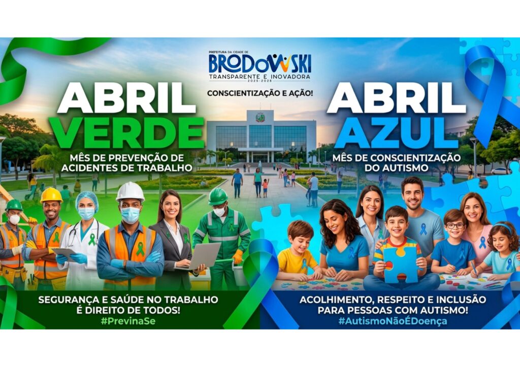 Neste mês, a Prefeitura de Brodowski une duas causas fundamentais. É tempo de Abril Verde e Abril Azul.